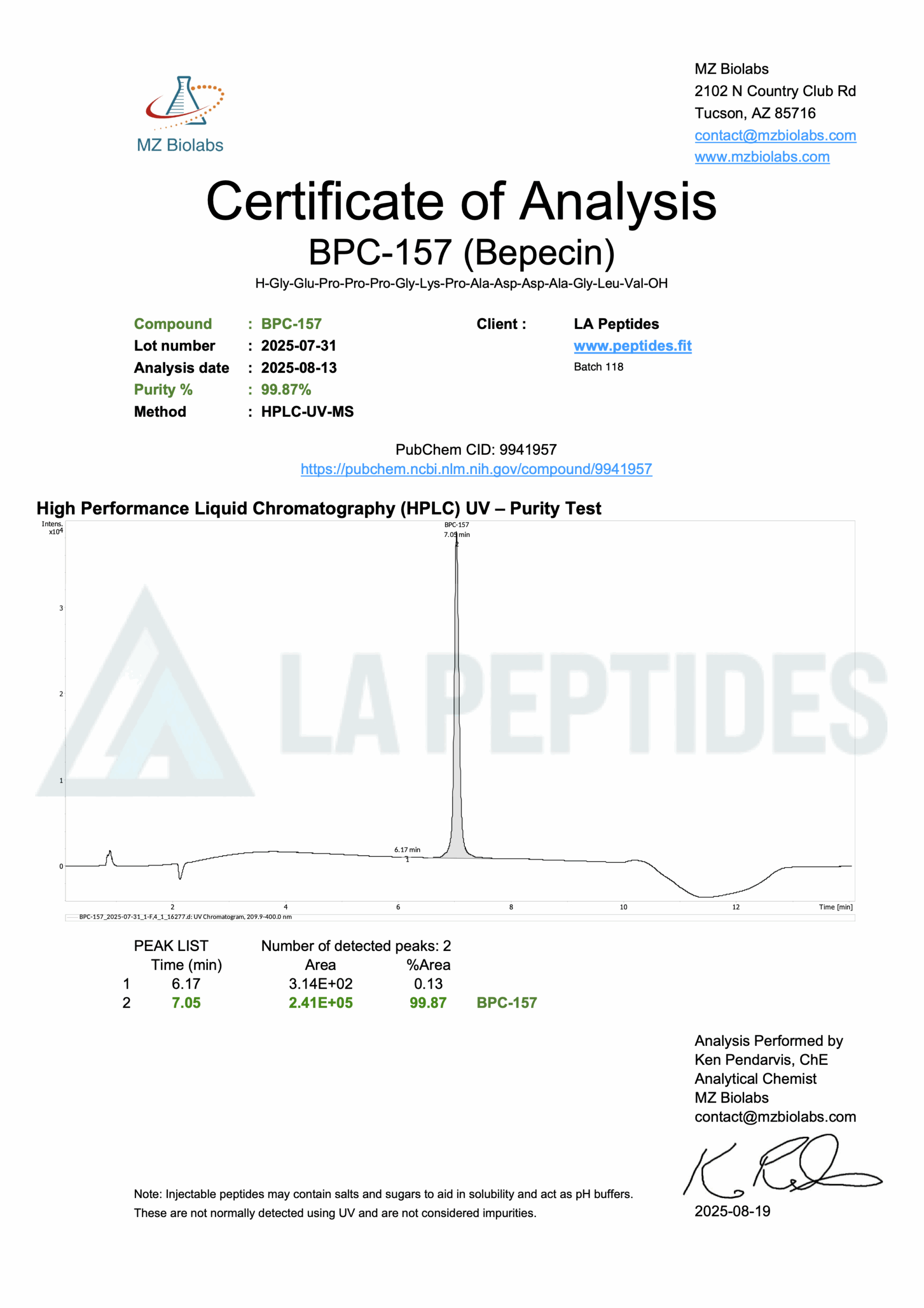 BPC-157 (Body Protection Compound-157) has been studied extensively in preclinical settings for its role in tissue repair and angiogenesis. Derived from a portion of human gastric juice protein BPC, the peptide exhibits a stable sequence of 15 amino acids. Research has shown its ability to stimulate fibroblast migration, collagen production, and epithelial repair in wound and muscle injury models [1].