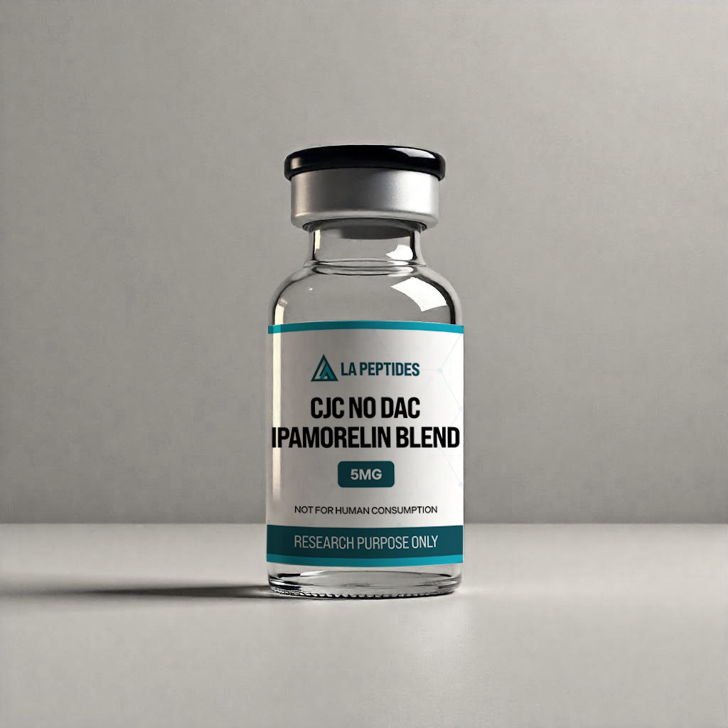 This blend combines CJC-1295 (No DAC) and Ipamorelin—two research peptides that act synergistically on the growth hormone (GH) axis. CJC-1295 stimulates GH-releasing hormone (GHRH) receptors, while Ipamorelin targets ghrelin receptors. Their combined use supports investigation into pulsatile GH secretion and downstream effects in cellular and endocrine research models.