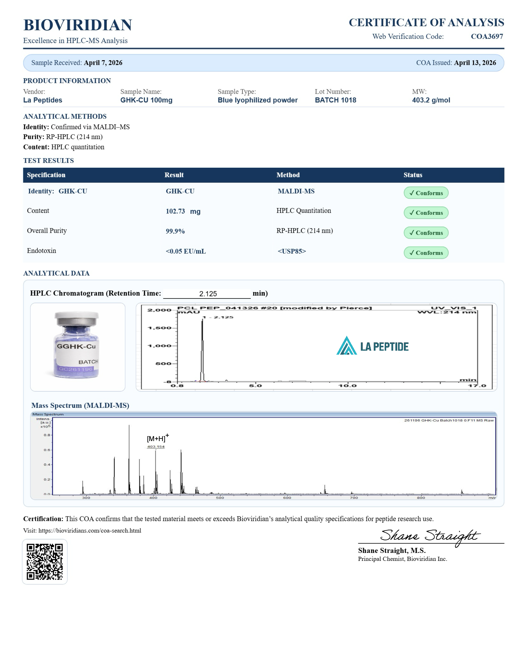 GHK is an endogenous tripeptide that forms a stable high-affinity complex with Cu(II), yielding GHK-Cu, a well-characterized ligand-metal pair.[1,2] In research settings, GHK-Cu serves as a model for copper delivery and signaling, enabling investigation of matrix protein synthesis, metalloproteinase regulation, antioxidant responses, and transcriptional reprogramming under standardized conditions.[3,4] Its versatility has made it a reference tool in dermatologic, regenerative, and oxidative stress research.