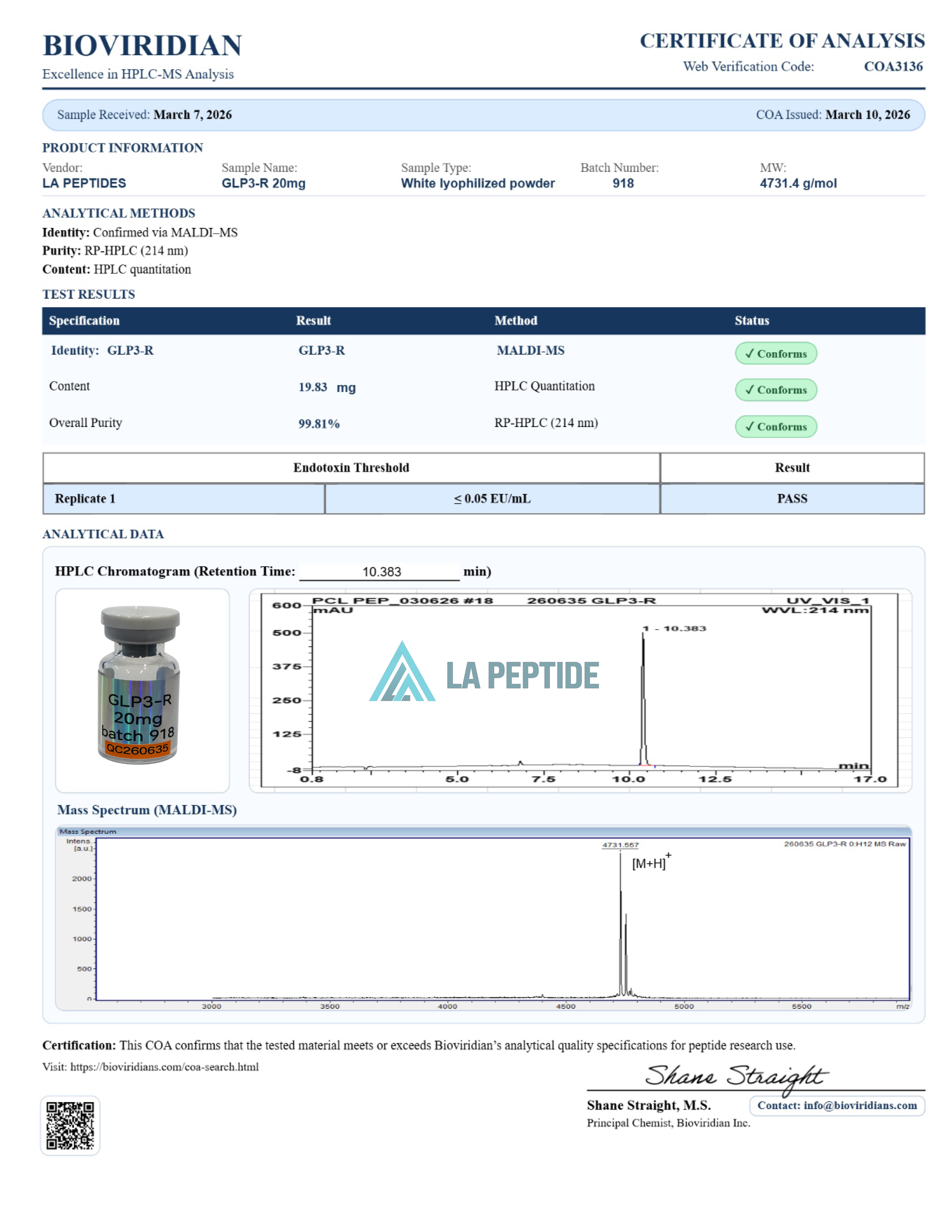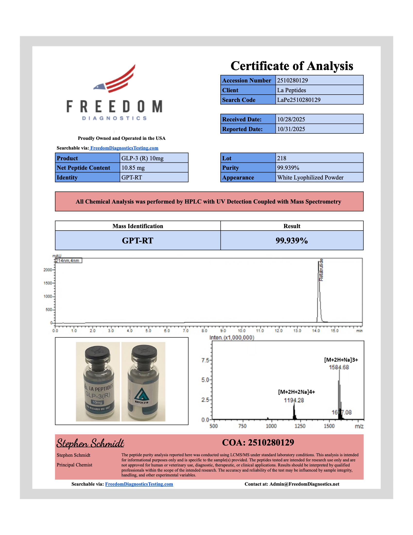 GLP – 3 (R) is a novel investigational peptide designed to activate three key metabolic receptors: glucagon-like peptide-1 receptor (GLP-1R), glucose-dependent insulinotropic polypeptide receptor (GIPR), and glucagon receptor (GCGR). This multi-receptor profile has made it an important compound in the study of endocrine cross-talk and metabolic regulation [1].