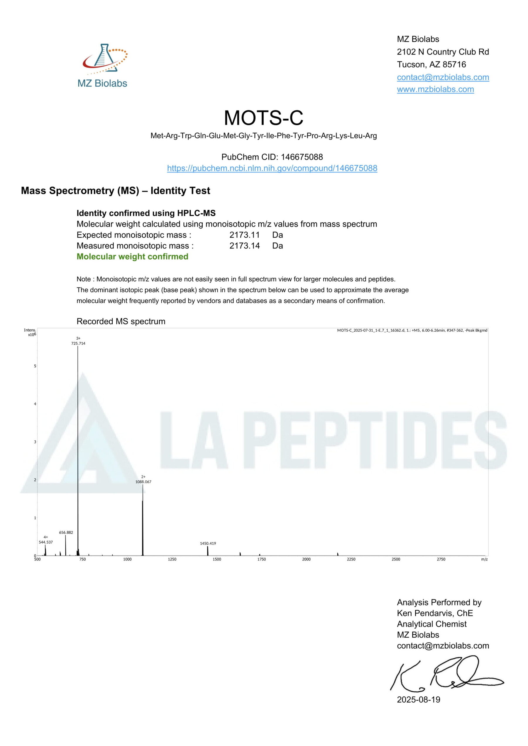 MOTS-c is a 16-amino acid mitochondrial-derived peptide encoded within the 12S rRNA of mitochondrial DNA. It is studied for its regulatory effects on metabolic homeostasis, cellular stress responses, and insulin sensitivity in preclinical models. MOTS-c is strictly intended for laboratory research use and not for human application.