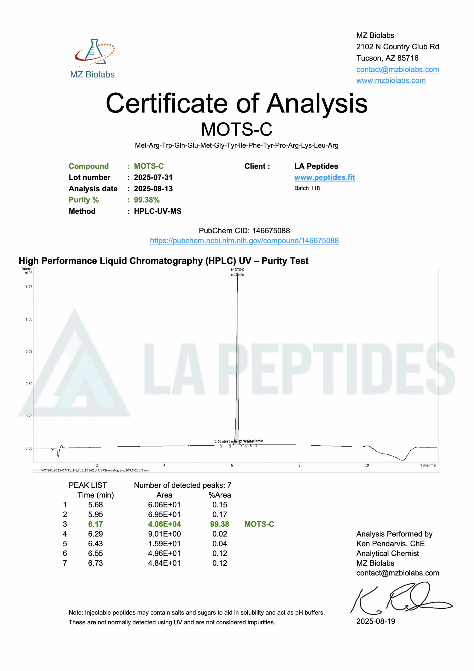 Because of this activity, MOTS-c is under investigation in models of aging, DNA damage response, and redox balance.